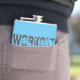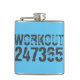Texto vestido e arranhado Workout 247365 em cinza com fundo azul. Perfeito para qualquer pessoa que esteja levantando, malhação, treinando, construindo carrocerias e indo para a academia.