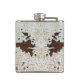 Camadas de tinta rachada e ferrugem em uma proteção de carro velha.