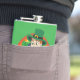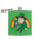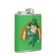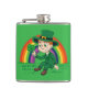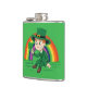 Flask com uma ilustração de um belo duende sorridente vestindo um terno verde, um chapéu alto enquanto segurava uma folha de shamrock, com um arco-íris colorido ao fundo Um design perfeito para celebrar o Dia de São Patrick, desenhado por Radka2D