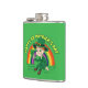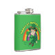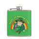Flask com uma Ilustração de um belo duende sorridente vestindo um terno verde, um chapéu alto enquanto segurava uma folha de shamrock, com um arco-íris colorido ao fundo e texto dizendo "Feliz Rua. Dia de Patrick" Um design perfeito para celebrar o Dia de São Patrick, desenhado por Radka2D
