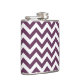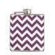 Hip e Trendy Chevron Flask moderno. Este frasco legal apresenta um traço de zague em forma de guincho em roxo e branco. Adicione texto a este design para lhe dar um toque pessoal.