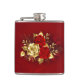 A composição de duas rosas vermelhas pintadas artisticamente e uma rosa ouro, decorada com ouro, folhas de joias sobre fundo texturizado.