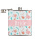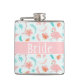 Usando um belo fundo azul com flamingos cor-de-rosa, há também flores e penas cor-de-rosa e azul que decoram esse design. No meio, "Noiva" é escrita sobre fundo rosa. Compre seu frasco de noiva hoje! Trabalho de arte de fundo criado por: AMBilustrações http://www.etsy.com/shop/AMBillustrations/