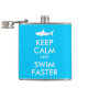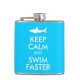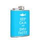 Mantenha calma e Natação mais rápido com design de paródia com uma silhueta de tubarão.
