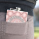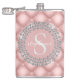Tufted Sparkly Diamonds Blush Pink Monogram Flask. Ultra luxurious design with black tufted background design. The design includes a customizable monogram and name surrounded by beautiful sparkly diamonds. Great to get your bling on!