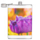 Violeta colorida, tulipas roxas, cor-de-rosa num leito de flores. Praticamente todas as cores do arco-íris estão presentes. Bela e positiva cena floral. Fotografia macro.
