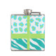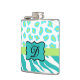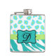 Divirta-se em festas ou outros eventos com este frasco personalizado com o seu monograma inicial e combinado com listras de zebra coloridas e peles de leopardo ou de chita. Este sofisticado aqua turquesa na moda e colorido, azul-lacrimogêneo e zebra branca e padrão de impressão leopardo está disponível em várias combinações de cores. Um emblema azul-azul-turquesa está em uma faixa de verde limão para criar uma área de personalização com seu monograma ou nome. Este design gráfico é uma das tendências mais quentes de arte e design, e é extremamente popular de moda a decoração doméstica. Isso é totalmente personalizável. Vai à loucura com estas designs de pele selvagem!