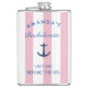 "Brinde à última viagem da noiva antes do véu com esse frasco 'Última Viagem Antes do Véu' para despedida de solteira, chic e divertido! Com um toque náutico, o frasco apresenta texto em azul-marinho em negrito e detalhes cor-de-rosa e branco, tornando-o um acessório elegante e prático para a noiva e sua turma. Seja você celebrando na praia, em um barco ou em uma festa pré-casamento, esse frasco elegante garante que sua bebida favorita esteja sempre com você com estilo. Um ótimo souvenir e assunto para conversas, é o presente perfeito para a noiva e sua comitiva enquanto navegam para o próximo capítulo!"
