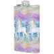Pintura aquosa de um unicórnio com arco-íris e fundo colorido