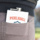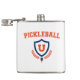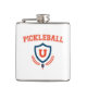 Você joga picleball, e esperamos que você beba bem. Este legal design de picleball é um logotipo do estilo universitário ou universitário em laranja e azul e tem um remo e uma bola de picleball.