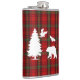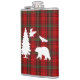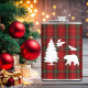 Um design elegante para o inverno com fundo de tartã vermelho, preto, verde e animais de floresta e árvore!