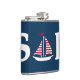 Ilustração de design de texto de vela com decoração de barco à vela em fundo azul escuro. É possível mudar a cor de fundo e adicionar uma diferente à design com sua escolha.