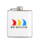 Você ama navegar? Esta da "garrafa do álcool navigação" mostra três velas nas cores da navigação do vermelho, no amarelo e no azul feitos sob encomenda, náuticos. "Vá navegar" é o que esta garrafa pequena deliciosa lê. Um presente perfeito para o proprietário do marinheiro ou do iate em sua vida. Para ver produtos-Por favor mais super do neato visitar minha loja "a princesa de Hungarican" em www.zazzle.com/hungaricanprincess*.