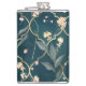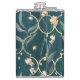 Veluz, fundo verde profundo com padrão marroquino dourado e flores de orquídea.