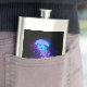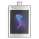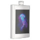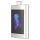 Large, blue, artistically drawn, glowing, bright jellyfish, with long tentacles on black background with purple bioluminescence. Luminous jellyfish.