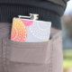 Um design geométrico com mandala aleatória e vibrante inspirou círculos cor-de-rosa e amarelo em contraste com um fundo azul claro. Adicionar um nome personalizado faz uma ideia ideal de presente. Para isso, clique no botão "Personalizar este modelo" ou use a ferramenta design. Altere o texto e a fonte para um estilo e cor da sua escolha.