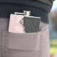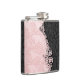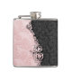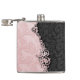 Design rico e elegante, com fundo damasco de cinza a preto, com cobertura recortada em cor-de-rosa suave, gravada de forma ornamentada.
