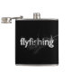 A palavra pesca com mosca é escrita em popular prata e texto tipográfico branco com um brejo de água. Uma libélula fica no texto. Fantástico para pescadores de mosca e mulheres e faz um presente de excelente para Dia de os pais.