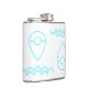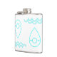 Um marcador de mapa azul com a fórmula química da água (H2O) nela escrita, acima das ondas de abstrato semicírculo. Design é reversível, tornando-se nuvens e uma gota de chuva!