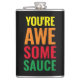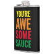 Com o elogio, "Você é o Awesomesauce", estilizado em uma fonte de blocos altos com quatro cores de pimenta corajosa em um fundo preto sólido, este frasco é a forma perfeita de celebrar alguém especial no Dia Mundial do Complemento (1 de março) — ou qualquer dia que você se sinta como fazer dia de alguém, em uma festa, ou até mesmo no escritório! © W.H. Sim. Mais informações em zazzle.com/wordsofwhimsy