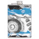 The Wave Mechanism – Custom Vinyl Wrapped Flask transforms abstract art into a stylish everyday accessory. Symmetrical circular motifs evoke gears in motion, while the bold blue wave band flows across the center, balancing structure with fluidity.