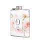 Flores cor-de-água elegantes, cor-de-rosa-rosa, burgundy e brancas e verde-jardim delicado, com a letra "O" enfeitada na cinza das ardósias, frasco de monograma. O Flask apresenta uma linha de texto modelo de solteiro de para personalizar com o nome.