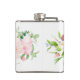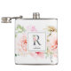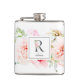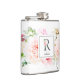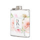 Flores cor-de-água elegantes, cor-de-rosa-rosa, burgundy e brancas e verde-jardim delicado, com a letra "R" enfeitada em cinzas de ardósia, frasco de monograma. O Flask apresenta uma linha de texto modelo de solteiro de para personalizar com o nome.