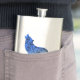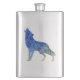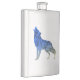 Esta design é o contorno de um lobo uivante com um gradiente de cor azul a bege e a silhueta de um dentro de árvore.