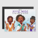 Um trio feminino afro-americano vestido de branco com faixas coloridas individuais canta louvores para as festas de fim de ano, fazendo um barulho alegre com as mãos, voz e instrumentação.