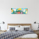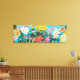 Uma pintura acrílica original de Kristina Anderson. Pequenas criaturas e flores coloridas em um fundo leve e rico impresso na canvas.