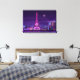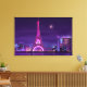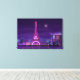 Arte de parede de canvas mostrada com uma impressão de arte de uma paisagem da cidade de Paris em tons roxos de cor. Personalize este item ou comprar como está. Imagem do stock