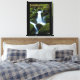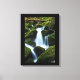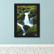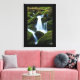 Arte canvas mostrada com uma impressão fotográfica de uma bela cachoeira nas montanhas. A canvas tem uma borda preta.