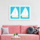 Esta canvas foi desenhada com a minha representação de dois veleiros brancos num fundo de turquesa.