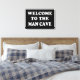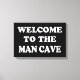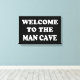 Bem-vindos aos seus amigos à sua caverna masculina com esta canvas para o seu muro que diz, "bem-vindos à caverna masculina" em letras brancas a negrito num fundo preto.