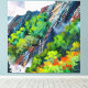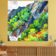 Uma paisagem vibrante com uma floresta exuberante em penhascos robustos de montanha, que explode com matizes de outono. O ar sujo tece através das árvores, criando uma atmosfera serena e sonhadora. Uma mistura perfeita de cores ousadas e pinceladas expressivas traz a natureza à vida.