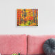 A arte da canvas é mostrada com uma impressão fotográfica de uma bela cena de árvores de outono. Imagem do stock