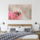 Grande arte canvas moderna com abelha, sobre flores cor-de-rosa com fundo ondulado. Personalize o tamanho para se adequar ao seu decoro doméstico.
