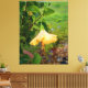 Fotografia de uma Flor de Hibisco amarela com gotas de orvalho de água nas pétalas, como Canvas.