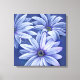 Estonteante osteopermum calenduleae floral ou pintura margarida africana em tons de pintura impressa azul, roxa e lilás e branca. Perfeito para adicionar um toque de cor azul púrpura a uma sala interior. Esta tela é tirada de uma pintura original de guache em papel escuro pela artista botânica Sarah Trett.