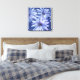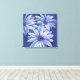 Estonteante osteopermum calenduleae floral ou pintura margarida africana em tons de pintura impressa azul, roxa e lilás e branca. Perfeito para adicionar um toque de cor azul púrpura a uma sala interior. Esta tela é tirada de uma pintura original de guache em papel escuro pela artista botânica Sarah Trett.