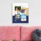 Esta tela de impressão personalizada de colagem de fotos apresenta blocos de na moda e tipografia com tema ouro e cor azul. Substitua essas 4 fotos em colagens com a sua e personalize o texto com seu nome de família e suas iniciais.