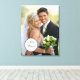 Canvas de Foto de Casamento de Etiqueta Branca Negra que você pode personalizar com sua foto de casamento, data de casamento e noiva e nomes de noivos. Você pode posicionar o círculo em qualquer lugar que ele se encaixe na sua foto selecionando "personalizá-lo" e usando as ferramentas de edição. Ajuste também o tamanho da fonte dos seus nomes para ajustado o círculo.