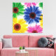 A arte canvas é mostrada com um impressão gráfico de bonito flores margaridas. Imagem do stock