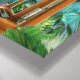 Um cenário do paraíso tropical sobre a impressão de fotos do oceano. O papagaio vem à vida escondido atrás das folhas de monstera espiando através da luxuosa e fumegante folhagem antes do sol quebrar pela espetacular paisagem.