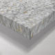 Imagem aproximada de vários conchas marinhas, e estrelas-do-mar contra um fundo de areia branca. Cena de praia tropical, design de excelente para decorar um banheiro ou qualquer quarto em um tema costeiro ou oceânico.
