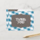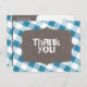 Canvas de Gingham Azul e Branco Obrigado Cartões p