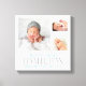 Adicione três de suas fotos favoritas de recém-nascidos para criar uma bela e única colagem de fotos, impressão de canvas de arte. Personalize a design com o nome do seu bebê monograma e aniversário, estatísticas de nascimento ou outro texto personalizado. Clique em Personalizar para mover fotos ou alterar fontes e cores de texto para criar uma design única. presente de excelente para a família e amigos!