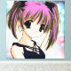 Uma menina de Manga com magenta e cabelo de ouro em rabo de porco - ela é tão doce - que adoraria perfeitamente o quarto de uma adolescente. Perfeito para escritório, casa ou lobby. Pode ser facilmente dimensionado para baixo -