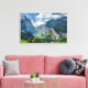 impressão de canvas de arte de uma incrível paisagem Suiça mostrando grandes penhascos, alpes suiços de neve, cachoeiras e cidades de Wengen, Lauterbrunnen e Trummelbach cai.
