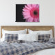 A arte da canvas é mostrada com uma impressão fotográfica de uma bonito flor rosa margarida. Imagem do stock